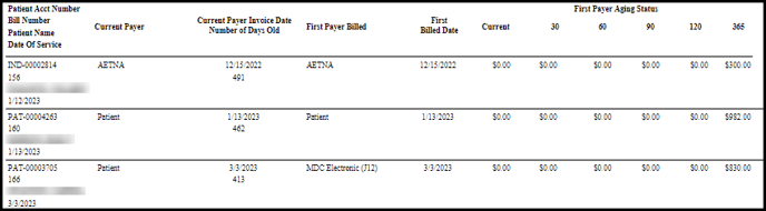 - When Sort Report By is equal to 'Current Payer' or 'Patient Name', the report will secondarily sort based on the Run Report By field (Date of Service or Date Billed).