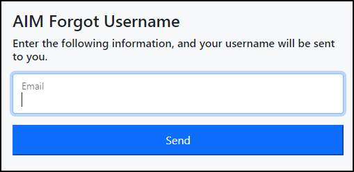 Forgot Username: Allows a user to request a username via email. This process can only proceed with a match of an email established in the User Maintenance Setup.