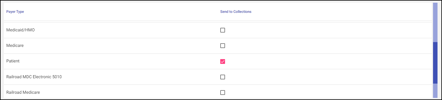 Any Payer Type can be marked for inclusion on the Collections Report, but only the patient should be used. Attempting to collect money owed by a contracted payer or by an agency is not recommended.