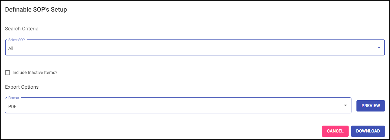 Definable SOP's Setup Report