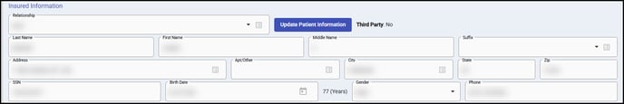 Update Patient Information will update the Patient Information section to match the Insured Information section.