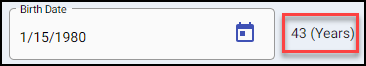 Birth Date will auto calculate the patient age based off the service date and list to the right of the field.