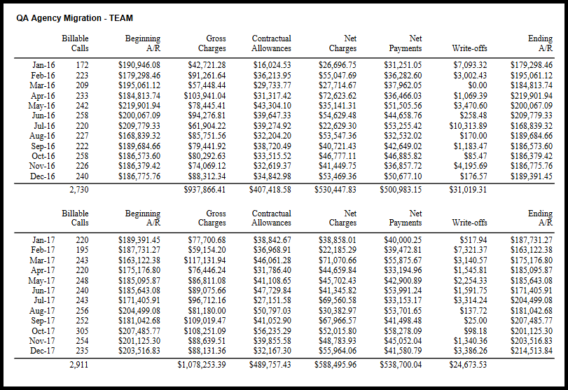 Billable Calls — Count of claims billed in that month (not based on date of service).