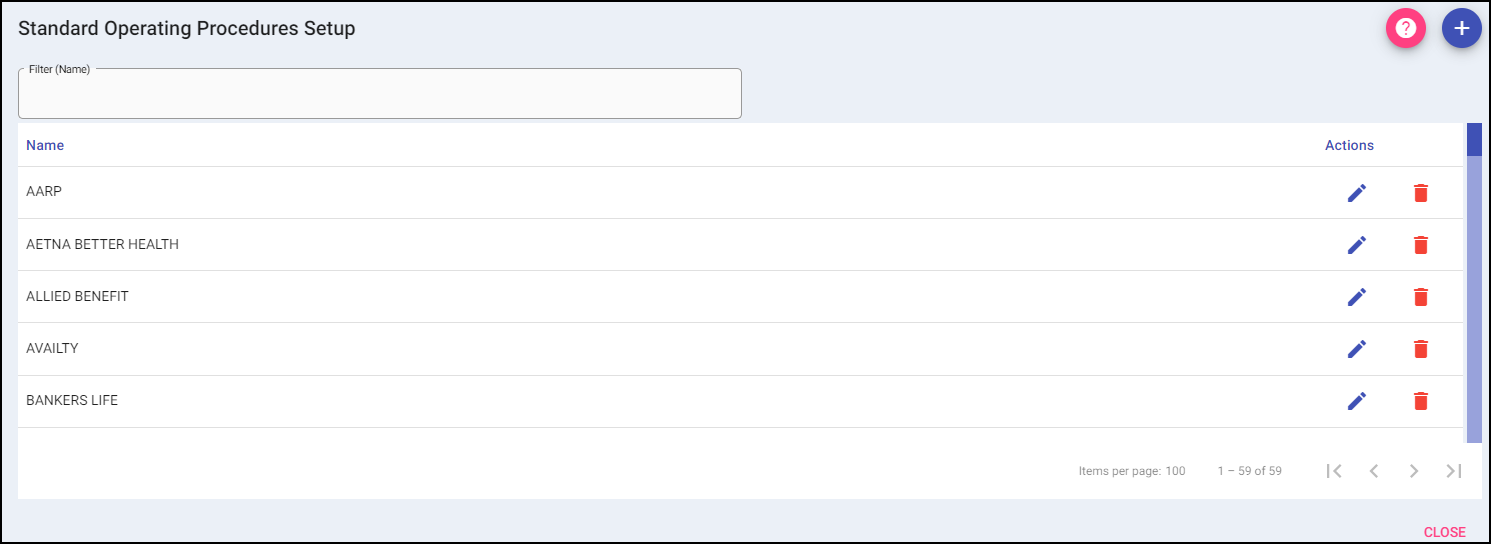 Used to explain processes or policy to users via a text-only reference. Entries can be viewed in the Billing Module from the Standard Operating Procedures icon on the menu bar.