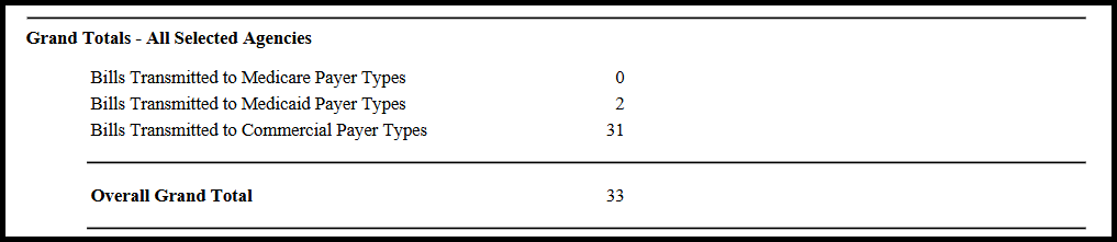- Overall Grand Total - Combined total of all claims transmitted during the date range